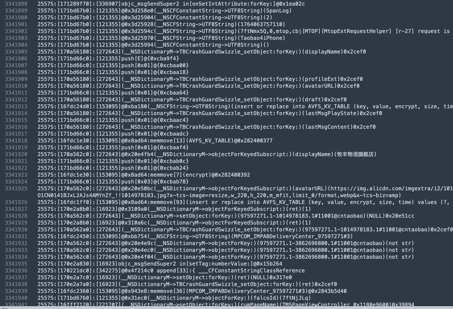 以上仅供技术研究,因为淘宝依赖调用了上千万的msgSend函数,所以程序比较卡,有时候可能崩溃,请谨慎操作,希望谅解,这个我已经过滤了其他不需要记录的函数依然非常庞大。